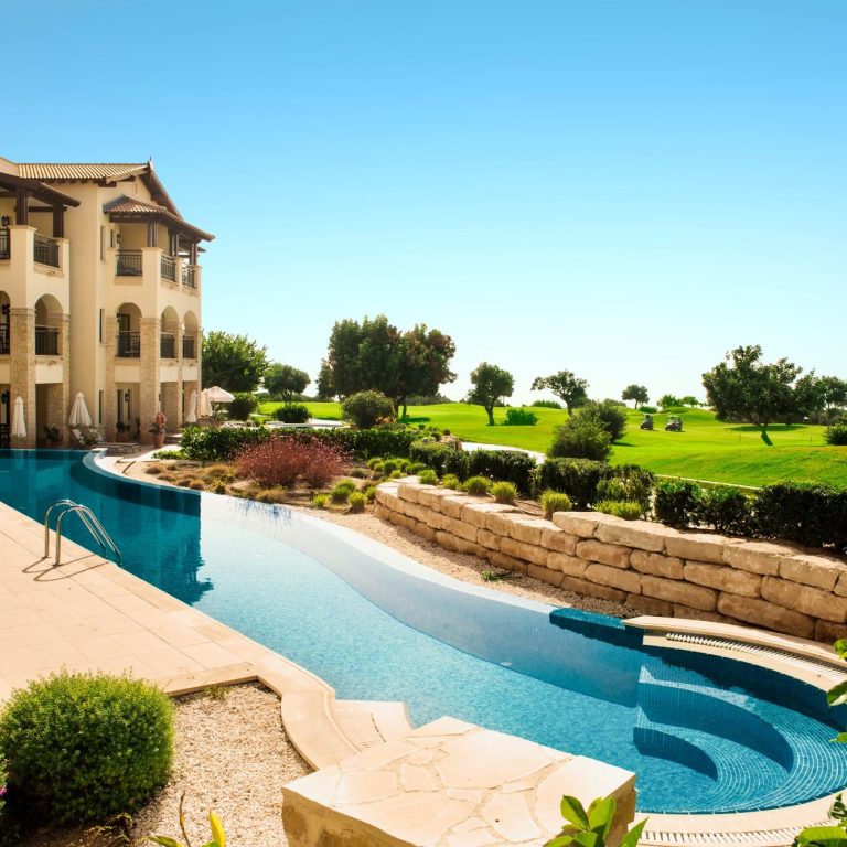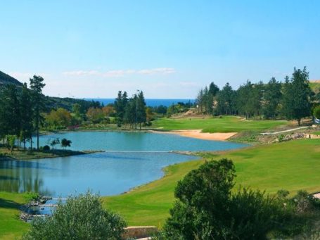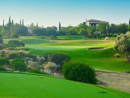 Der 18-Loch-Meisterschaftsplatz bietet eindrucksvolle Spielbahnen, deren Panorama Ausblicke ein charakteristisches Merkmal sind und die von Wallnuss-, Mandel-, Obstbäumen sowie Weinreben und Olivenhainen gesäumt sind. Als Teil eines Natura-2000-Gebiets ist die Natur ein allgegenwärtiges Element und der Golfclub wurde kürzlich als erster in Zypern mit einer GEO-Zertifizierung ausgezeichnet, die den umweltfreundlichen nachhaltigen Ansatz und das Engagement für Natur, Ressourcenschutz und gemeinschaftlichen Wert anerkennt .